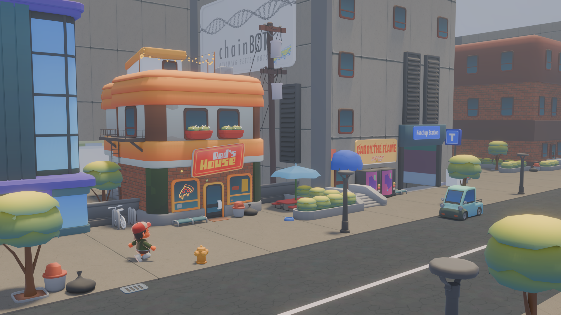 Play as Patty, sole proprietor of Red’s House, a tiny neighbourhood hobby shop that sells parts for small keychain sized robots called Gorgons. Hobbyists battle each other in the back alleyways of Ketchup Street or inside the shop.